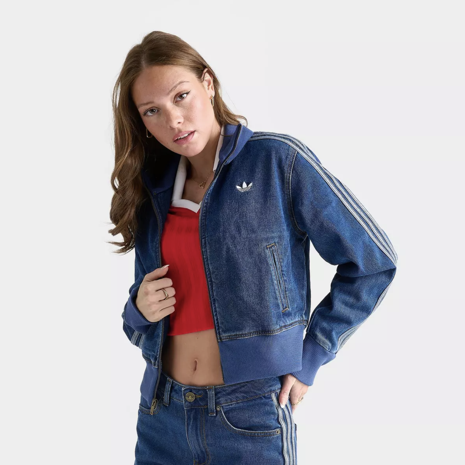 Rock a fresh take on an adidas classic when you wear the Women's adidas Originals Firebird Denim Track Top. This track top is crafted from comfy denim cotton and sports a fresh street aesthetic with timeless Trefoil branding and signature 3-Stripes along the sleeves.